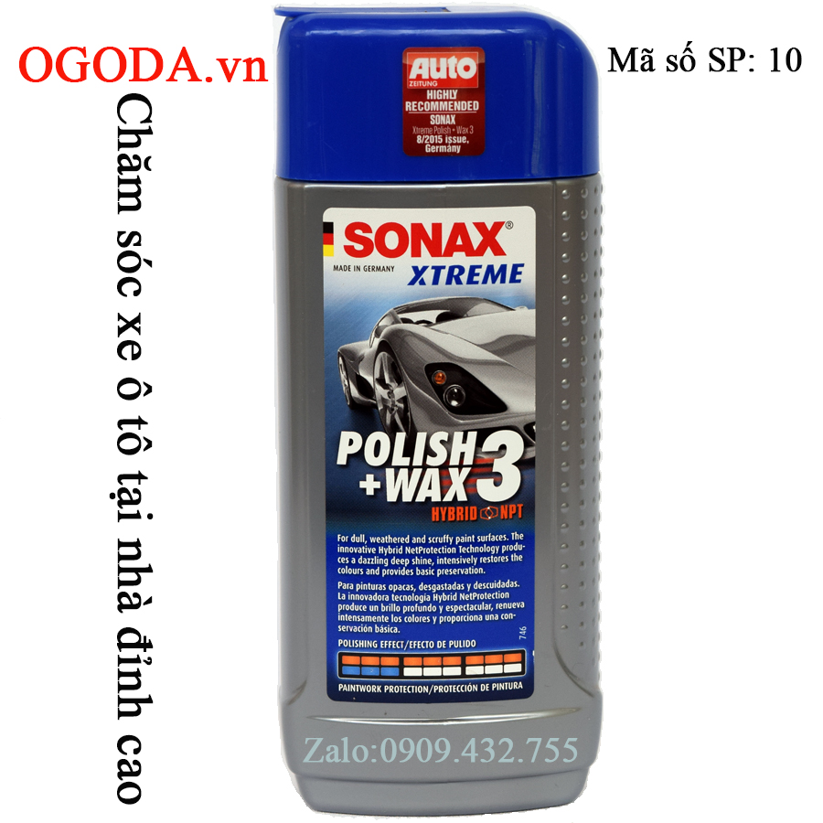 Sonax Xtreme & Polish Wax 3 (3 in 1) là dòng sản phẩm cao cấp nổi tiếng của nước Đức (Germany) sẽ giải quyết vấn đề tưởng chừng như là nan giải trên một cách đầy thuyết phục, sẽ khiến bạn vô cùng hài lòng và nhớ mãi về nó. Sau khi sử dụng Wax 3 sẽ khiến bạn thốt lên Good good. Tuyệt vời!!! Tuyệt vời