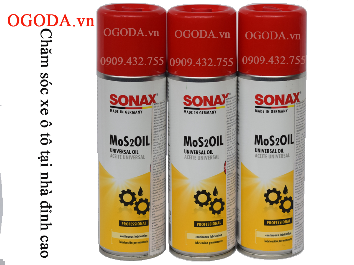 - Sonax Mos2oil là dầu đa dụng, dùng để làm tan rỉ sét, tăng cường tiếp xúc, làm hết tiếng kêu, tăng bôi trơn các phần chuyển động, làm lỏng ốc rỉ sét, đai bu lông, tăng cường dẫn điện và đánh lửa, bảo vệ phần sắt tiếp xúc với bên ngoài không bị ăn mòn.
