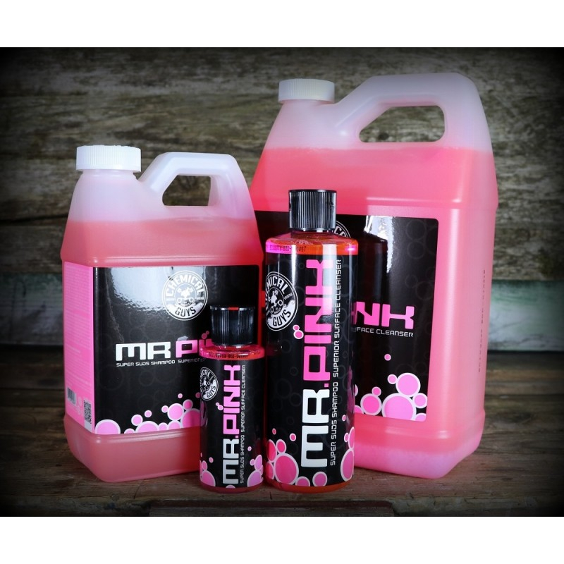 Chemical Guys không còn xa lạ khi cung cấp nước rửa xe chất lượng hàng đầu. Thương hiệu Mr. Pink nổi tiếng với hiệu quả, với xút siêu tạo bọt và khả năng làm khô nhanh. Nó chứa các siêu polymer cao cấp tạo ra nhiều bọt khí sẽ loại bỏ bụi bẩn và bụi bẩn khác và nhẹ nhàng trên bề mặt. Mr. Pink là xà bông rửa xe chuyên dụng với pH trung tính (pH 7), không ăn mòn lớp sơn của xe, cũng như các chất bảo vệ đã phủ cho xe.